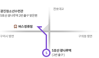 5호선 광나루역2번출구 맞은편 (광진청소년수련관 앞)