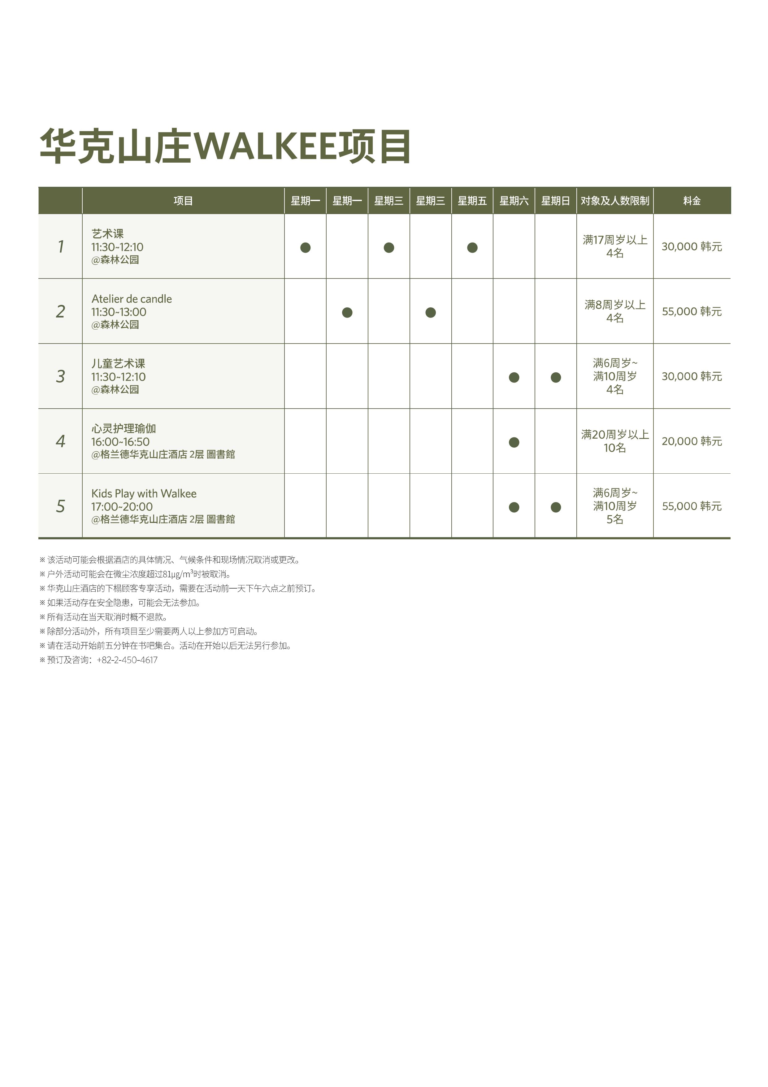 让华克山庄酒店及度假村专为酒店下榻顾客准备的多姿多彩的WALKEE项目,为你的旅行增添乐趣。华克山庄休闲专家