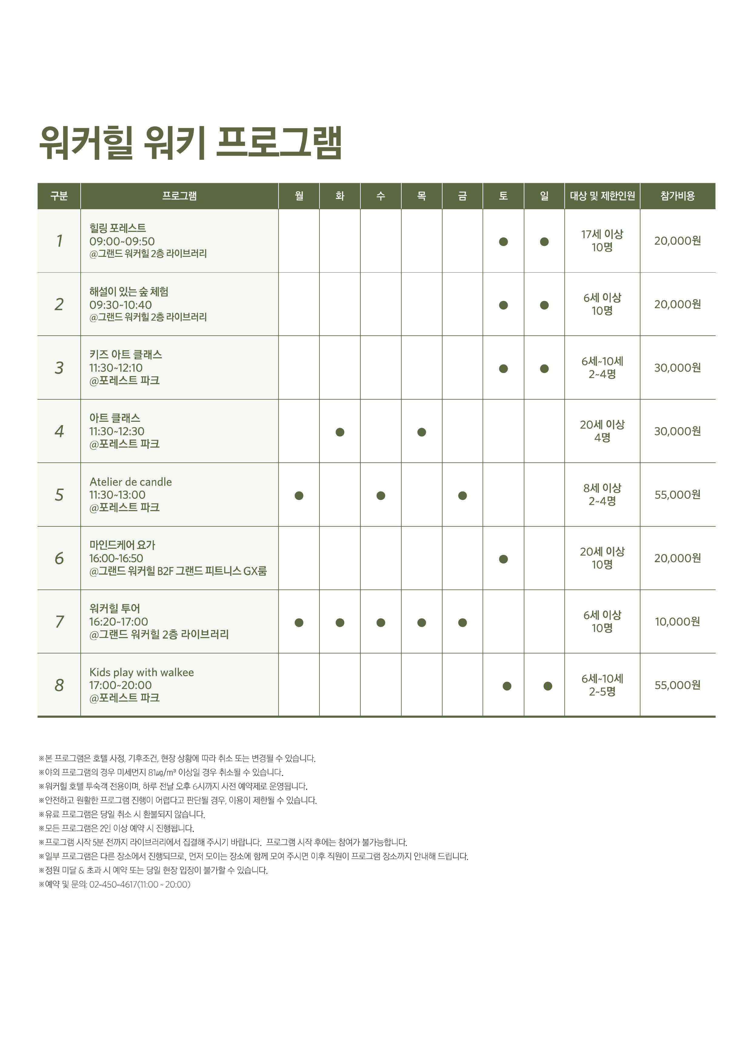 투숙객 전용으로 운영되는 워키 프로그램과 함께