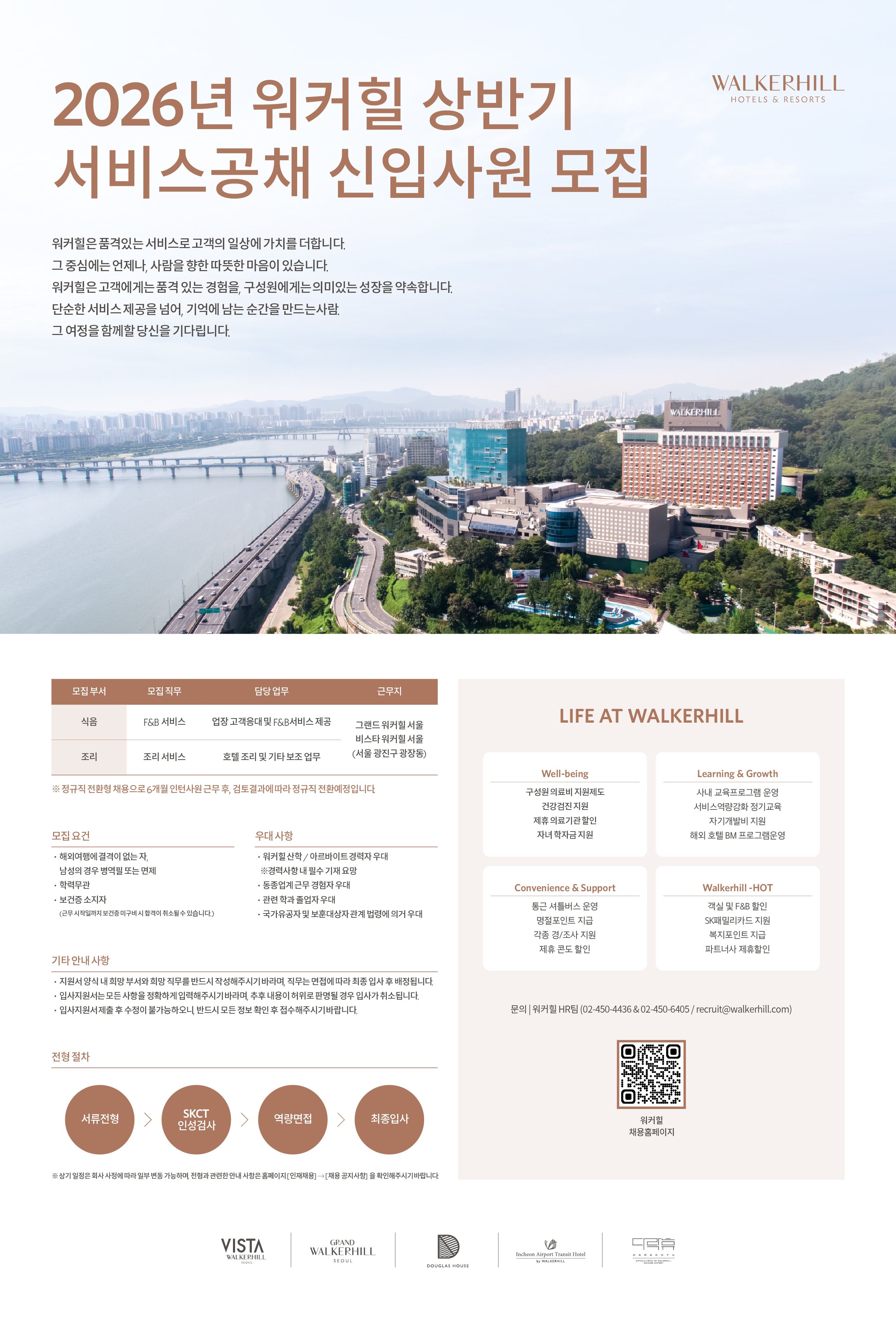 접수 및 문의 워커힐 HR팀 (T. 02-450-4436 & 02-450-6405, E-MAIL : recruit@walkerhill.com)